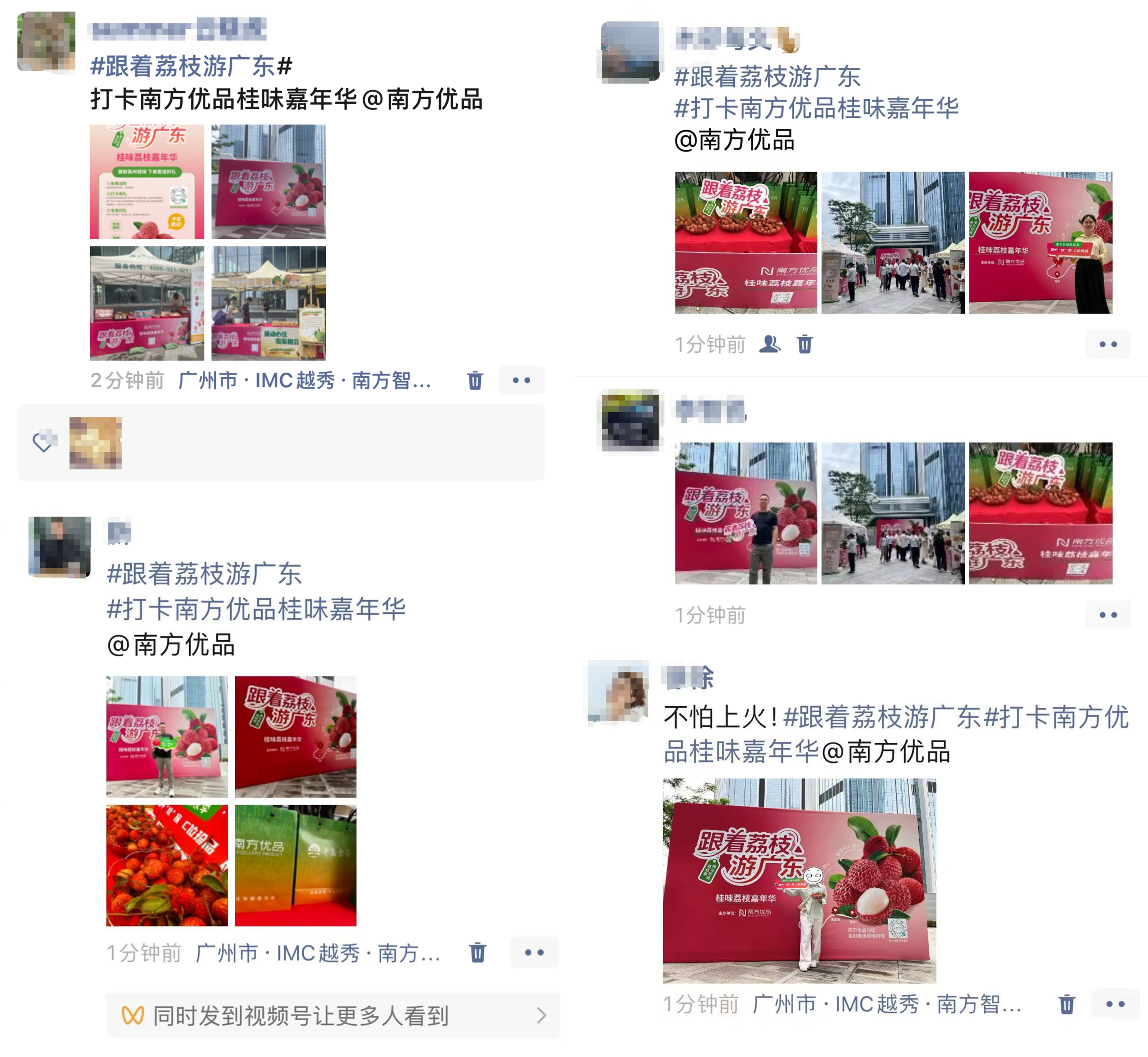 一颗颗小小的荔枝,编织出一幅幅飘溢着甜密与愉快的图景。步履现场,点缀着桂味荔枝元素的岭南特点配景板和俏皮可儿的手举牌,劝诱大批东谈主驻足拍照。